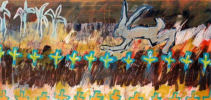 Was mir begegnet an Strukturen, Farben, Formen, Geordnetes und Ungeordnetes, damit spiele ich in der Malerei und formuliere Variationen zu dem Thema.