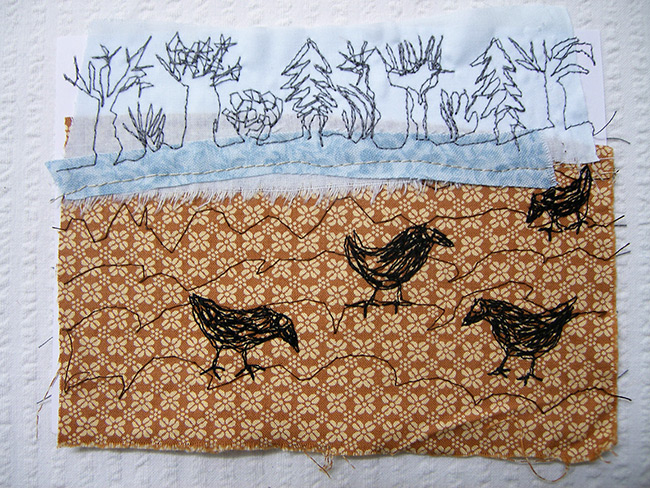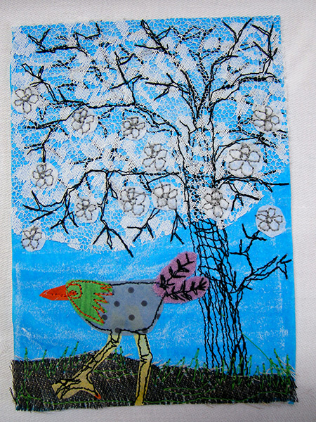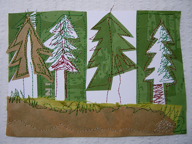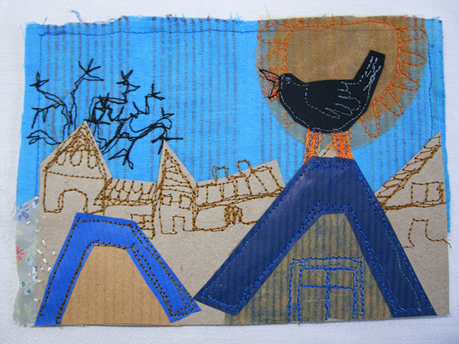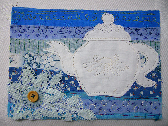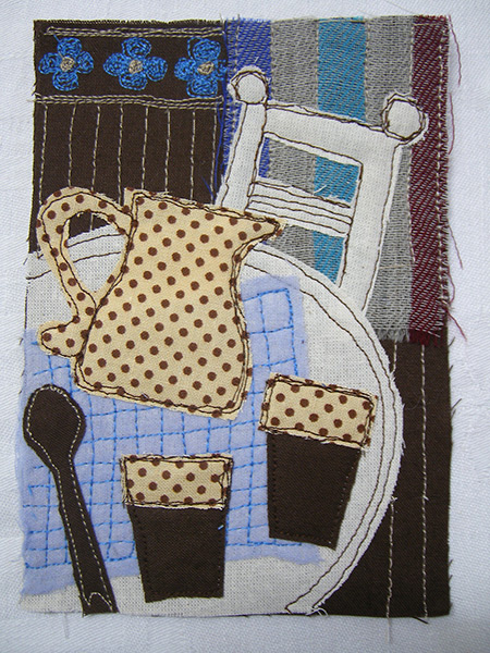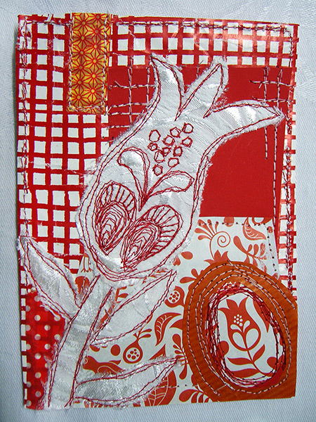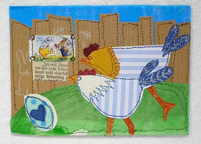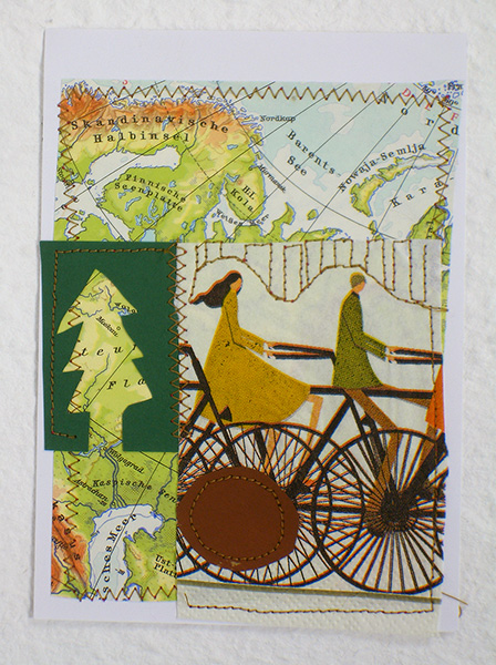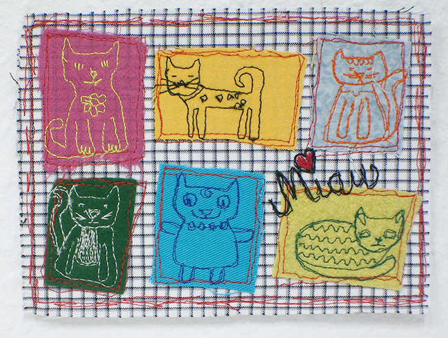 Für das Jahr 2014 habe ich mir zur Aufgabe gemacht, jeden Tag ein postkartengroßes Nähbild zu fertigen. So liegen dann zum Jahresende 365 Karten vor, jeweils mit Datum versehen.